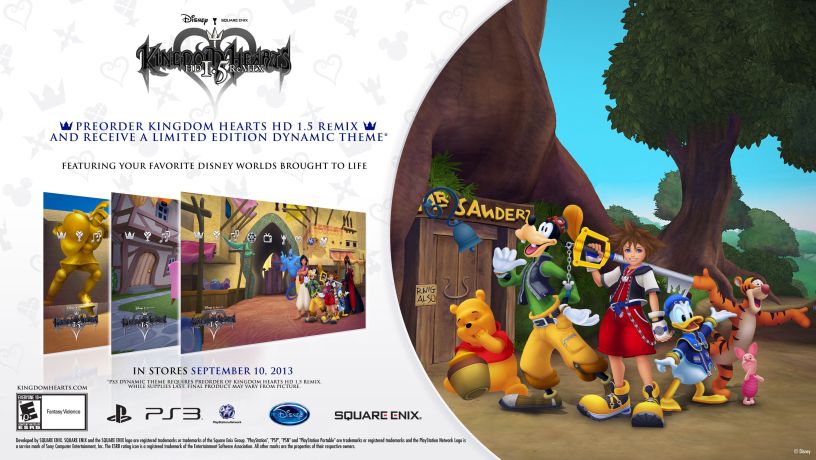 Square Enix, Inc., the publisher of SQUARE ENIX® interactive entertainment products in the Americas, today announced a Dynamic Theme for the PlayStation®3 computer entertainment system for KINGDOM HEARTS HD 1.5 ReMIX, which is set to launch on September 10, 2013.