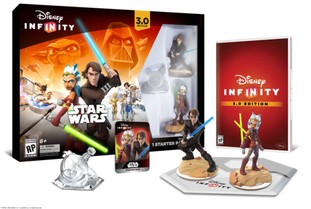 The Disney Infinity 3.0 Edition Starter Pack will include the Disney Infinity 3.0 Edition Base and video game software, the Star Wars: Twilight of the Republic Play Set, Ahsoka Tano and Anakin Skywalker character figures, and a web code card that unlocks content for PC and mobile devices. Other Disney Infinity 3.0 Edition Play Sets, figures, and Toy Box Expansion Games will be sold separately.