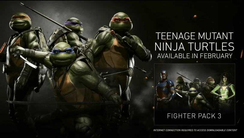 The Teenage Mutant Ninja Turtles will arrive on Feb. 13 for players who have purchased the Injustice 2 Ultimate Edition, Injustice 2 Ultimate Pack or Fighter Pack #3, and will be available as a standalone purchase beginning Feb. 20 from the PlayStation® Store, Xbox Store, Steam, and Microsoft Store for $9.99.